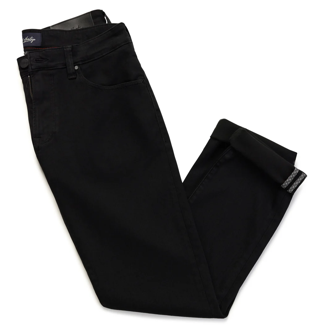 Elegance in black, this upscale jean is disguising superior flexibility and softness. The denim fabrication has a higher proportion of elastane with a luxe look and feel. Already in a slimming hue, the modern straight leg fit flatters even further with a tapered silhouette.