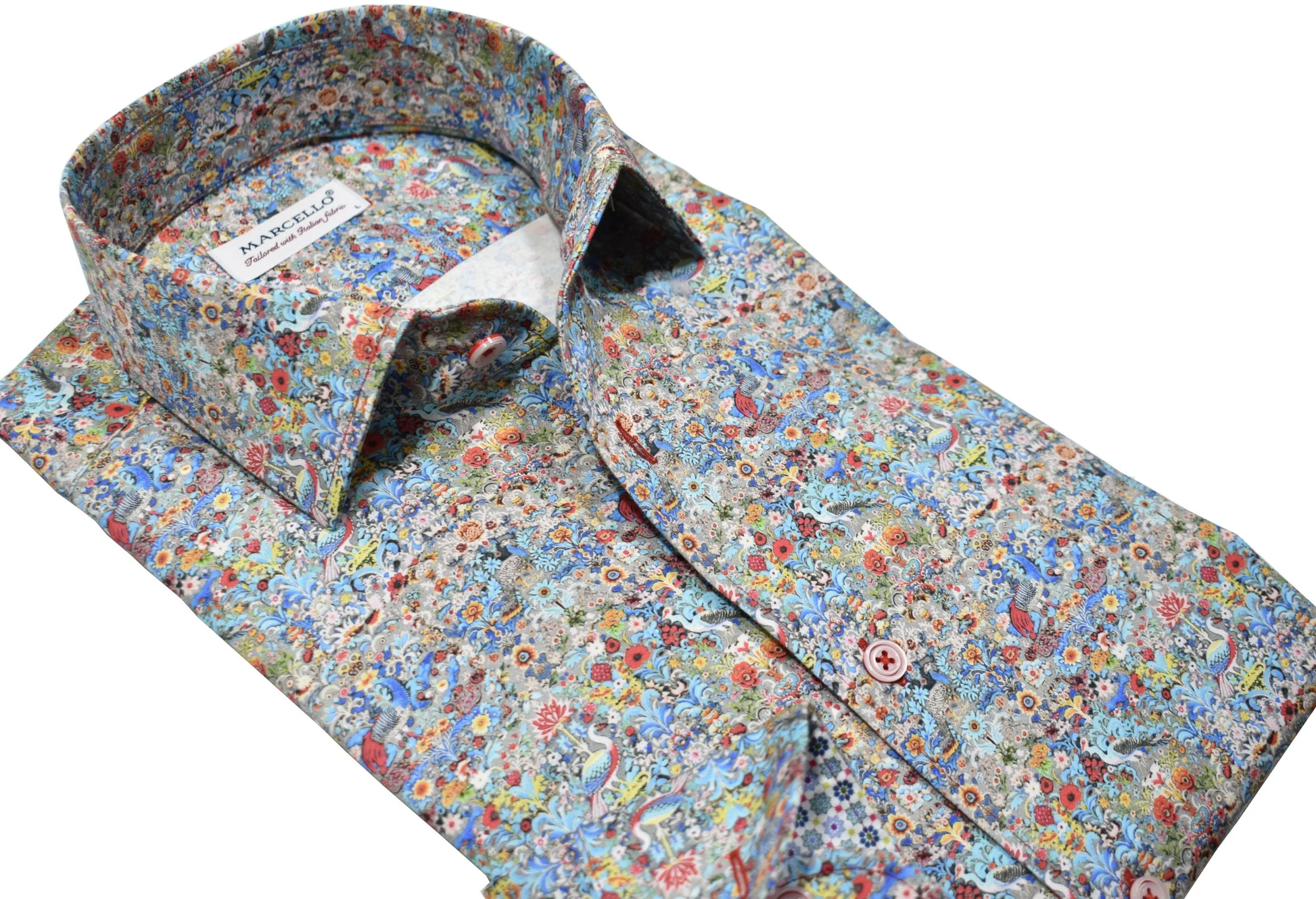 Upgrade your wardrobe with the Marcello W023R Dragon Abstract Roll Collar Sport Shirt. Crafted from extra fine cotton with a luxurious silk-like finish, this shirt is a dream to wear. The Marcello exclusive one-piece roll collar stands elegantly, while the custom matched buttons and trim fabric add a touch of sophistication. Perfect for any occasion.