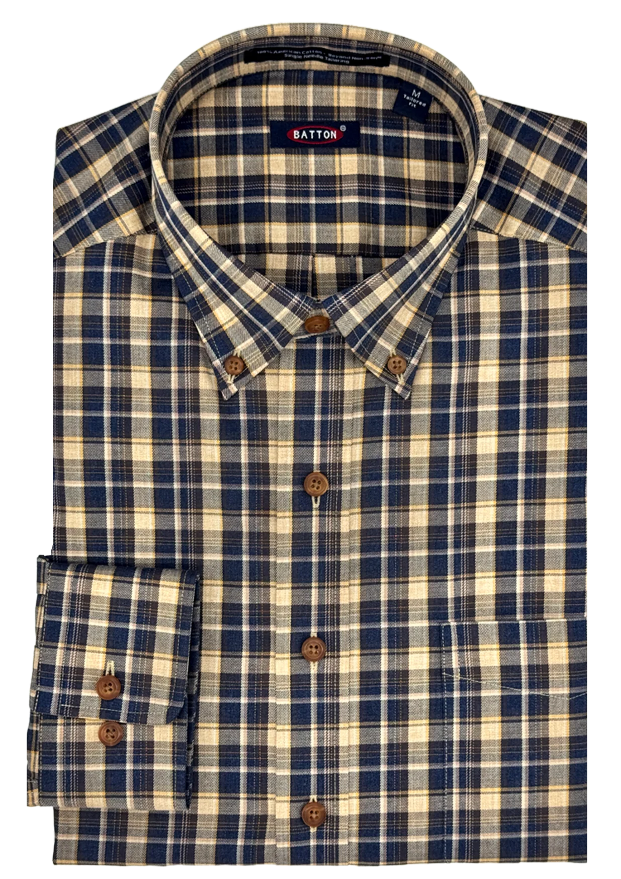 Audell men’s sport shirt strikes the perfect balance between classic and modern with its beige and navy plaid design. Crafted from 100% American cotton, it provides exceptional breathability, softness, and durability, making it ideal for daily wear. Enhanced with Beyond Non-Iron®