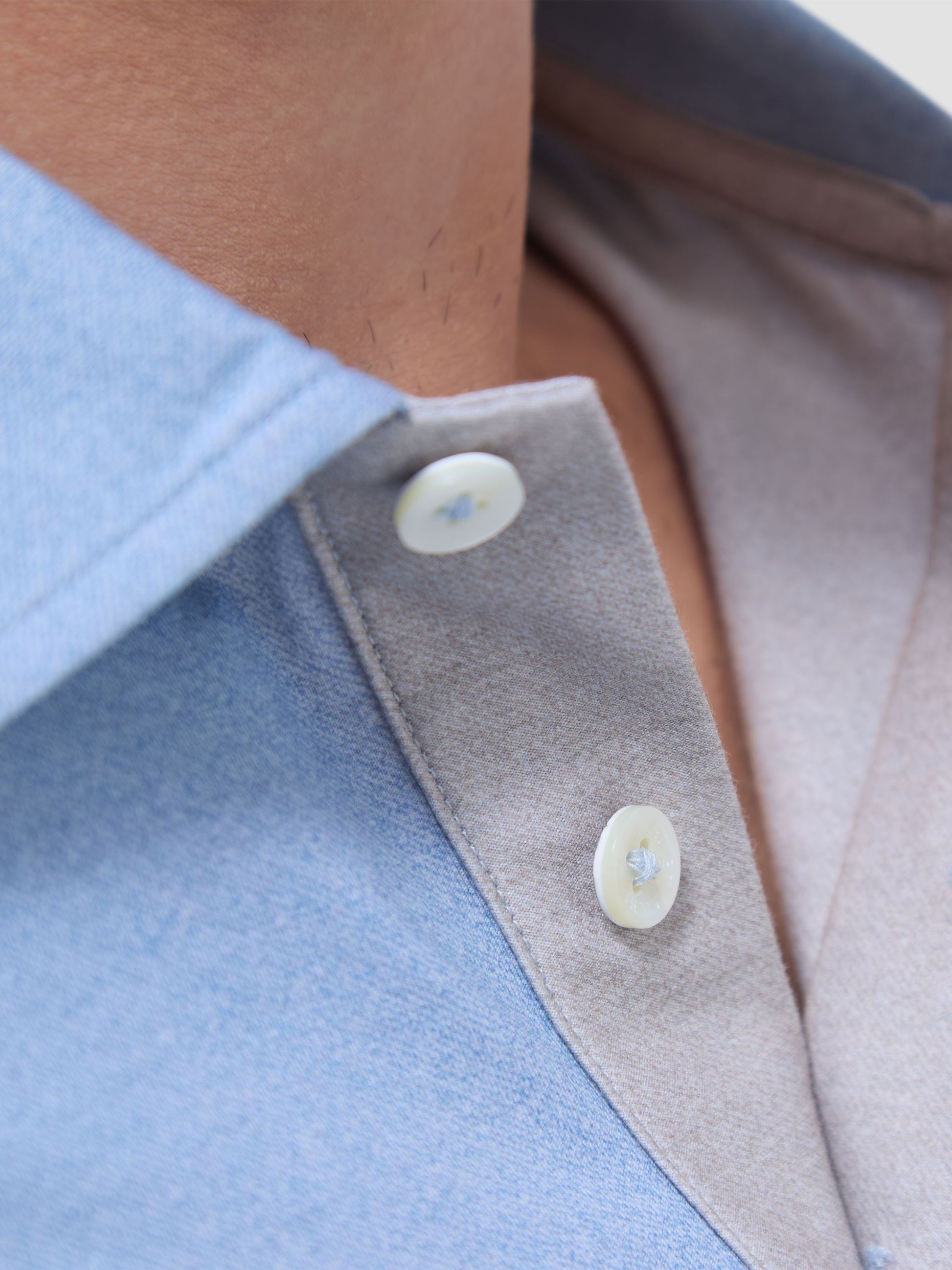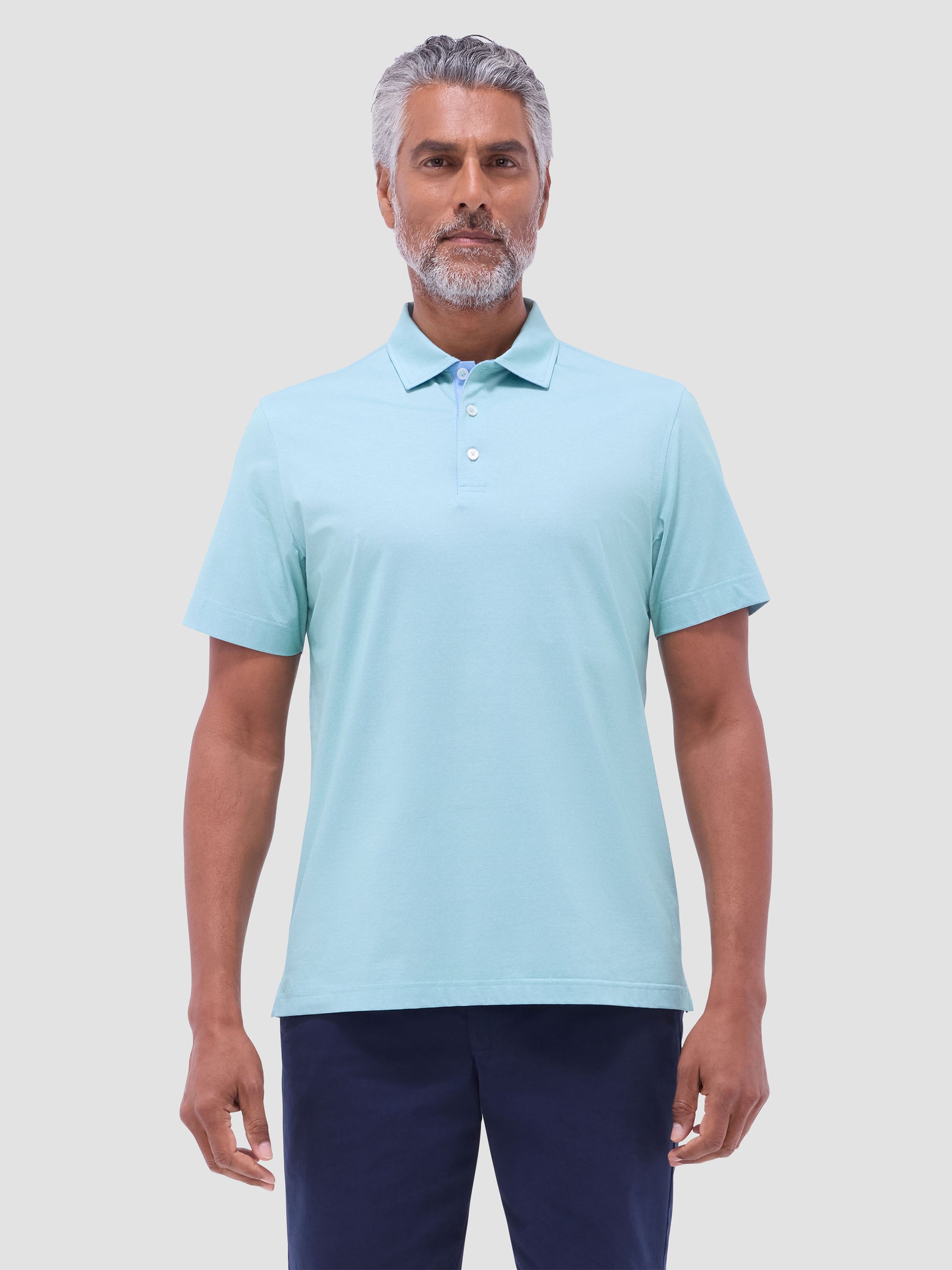 S/S - THREE BUTTON - SELF COLLAR - POLO. 92% COTTON 8% SPANDEX