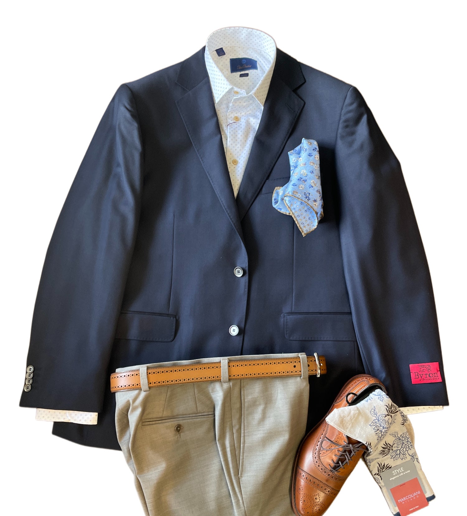 A timeless essential, the Byron Classic Navy Blazer is tailored from 100% Italian wool for a refined look and exceptional comfort. Designed with a notch lapel, flap pockets, and finished with matte pewter buttons, this blazer strikes the perfect balance of classic style and modern sophistication. Versatile enough for business, events, or smart casual occasions, it’s a wardrobe staple every gentleman should own.