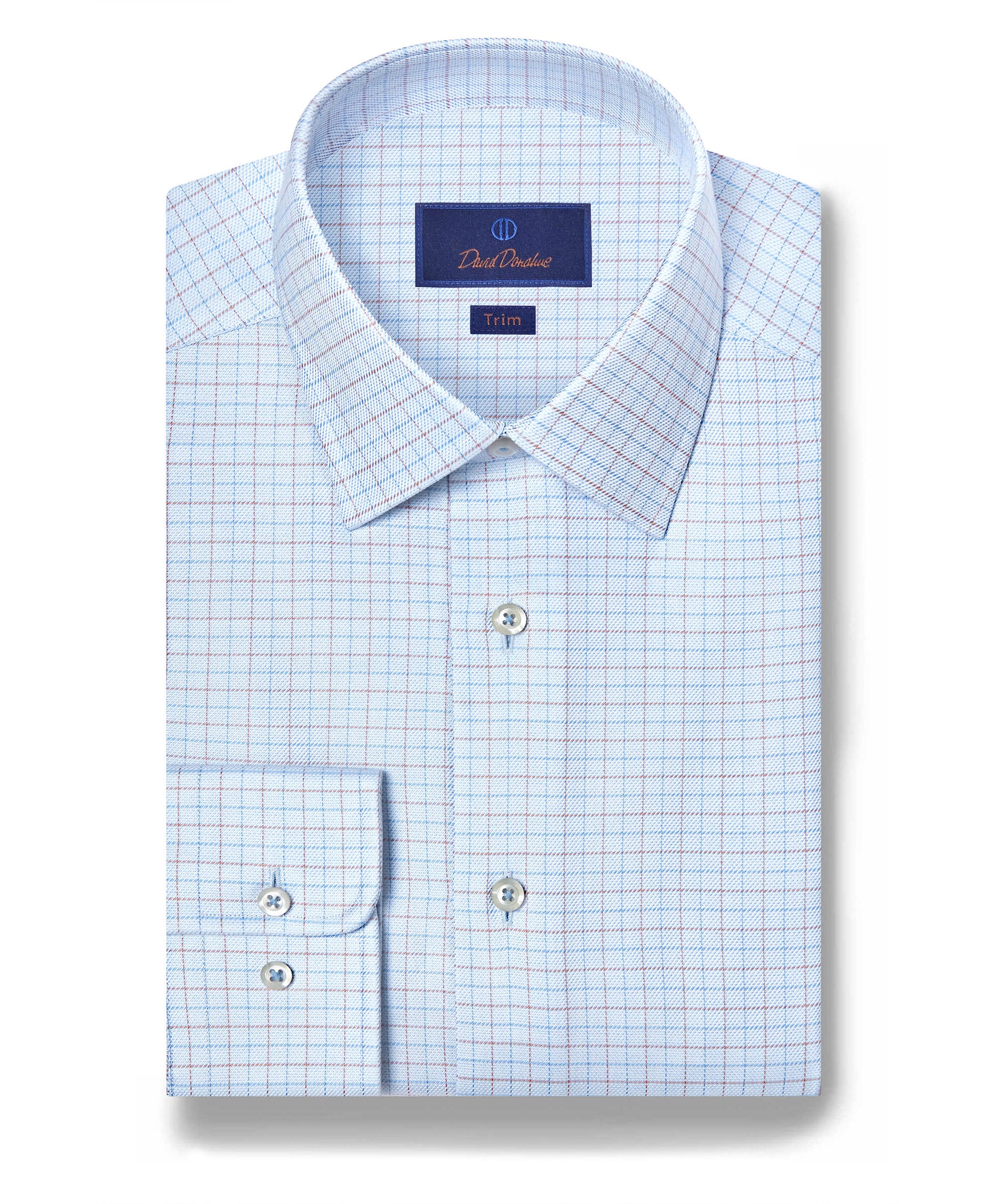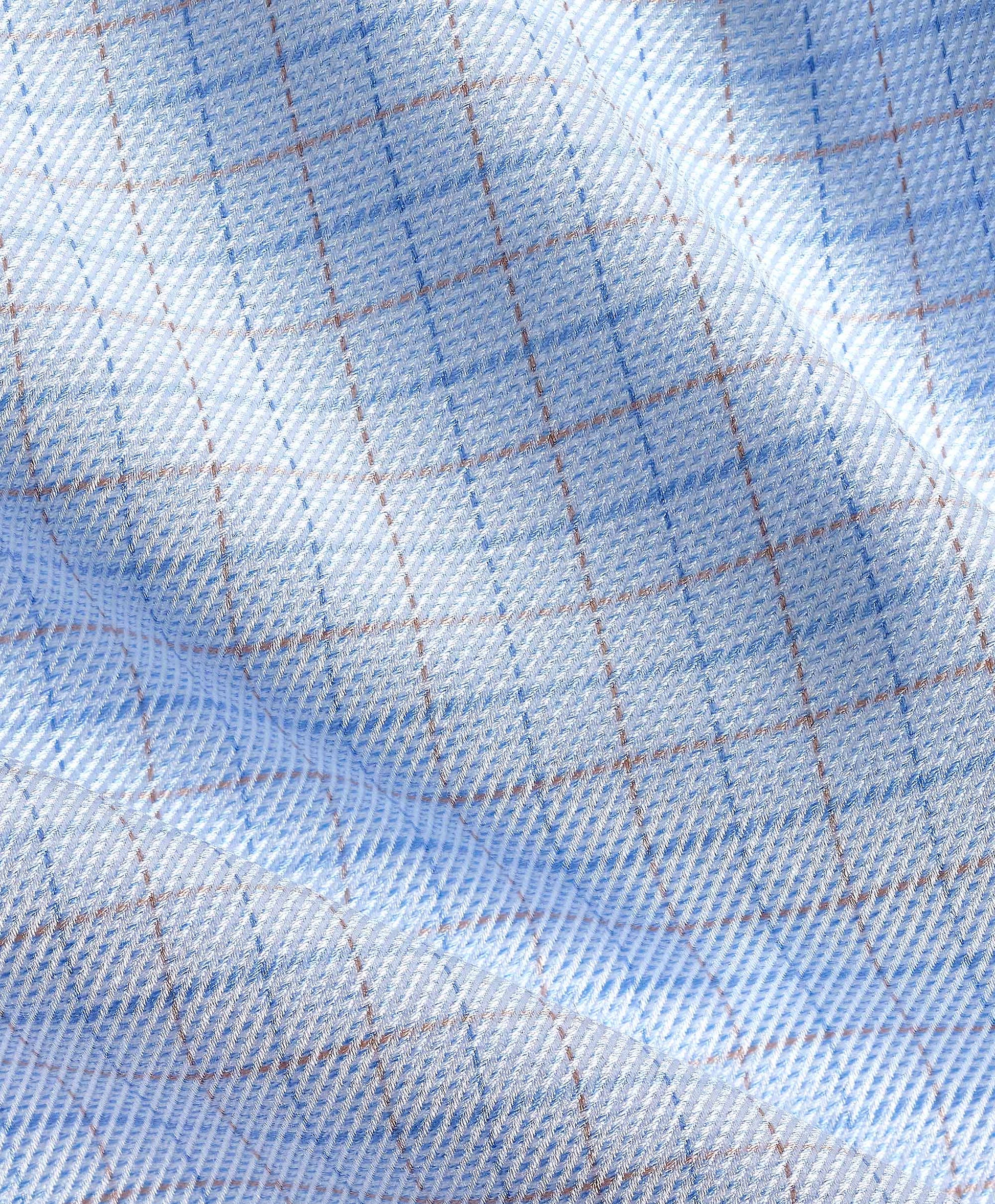 This David Donahue Check Twill Dress Shirt in Sky & Dune features a subtle pattern executed with precision. Crafted from 100% U.S. Pima cotton, this dress shirt delivers a smooth hand, light breathability, and a clean drape that stays sharp through the day. Features a check pattern with softened contrast that wears easily under tailoring or on its own.
