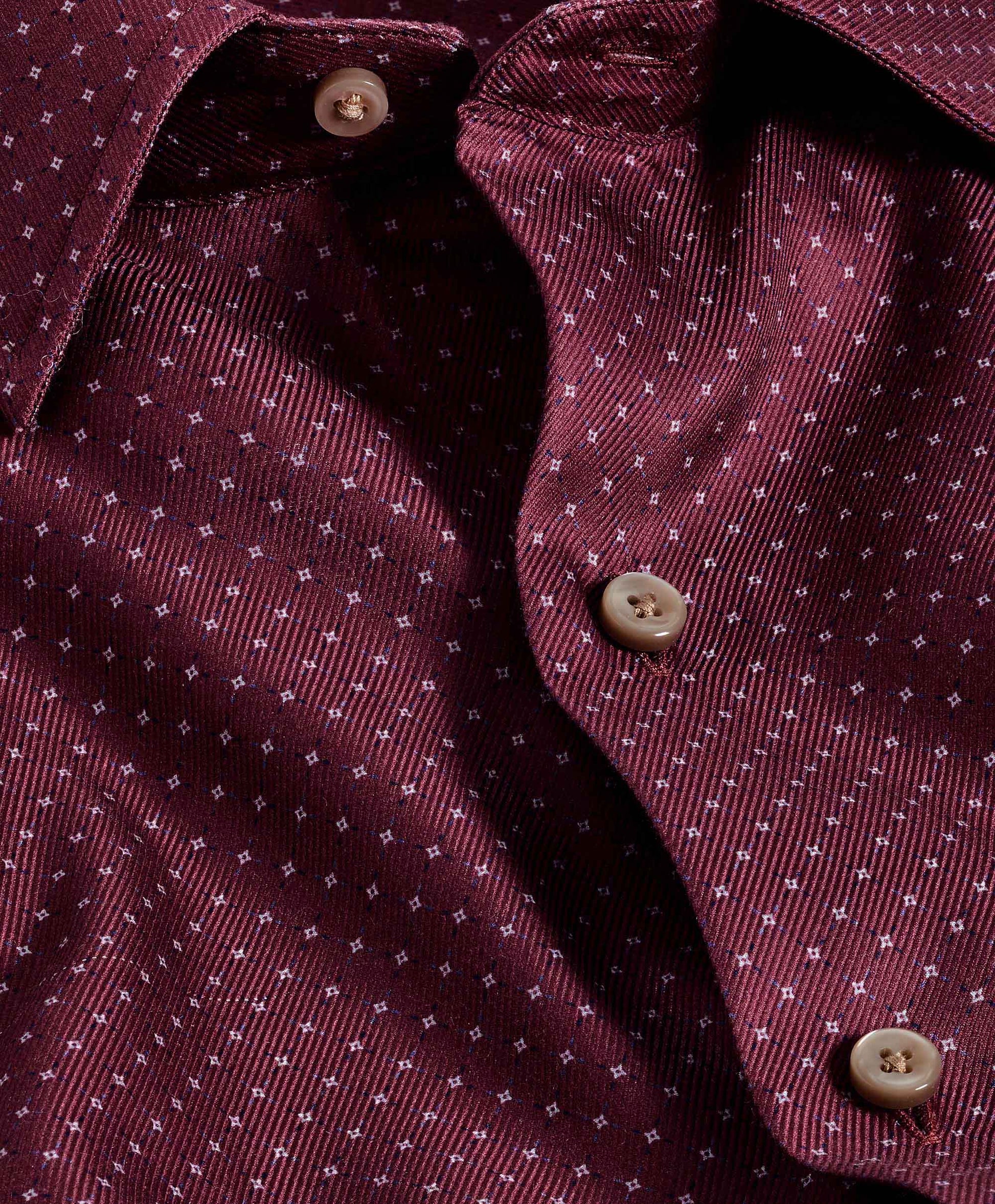 David Donahue Merlot Micro Print Sport Shirt - Trim Fit