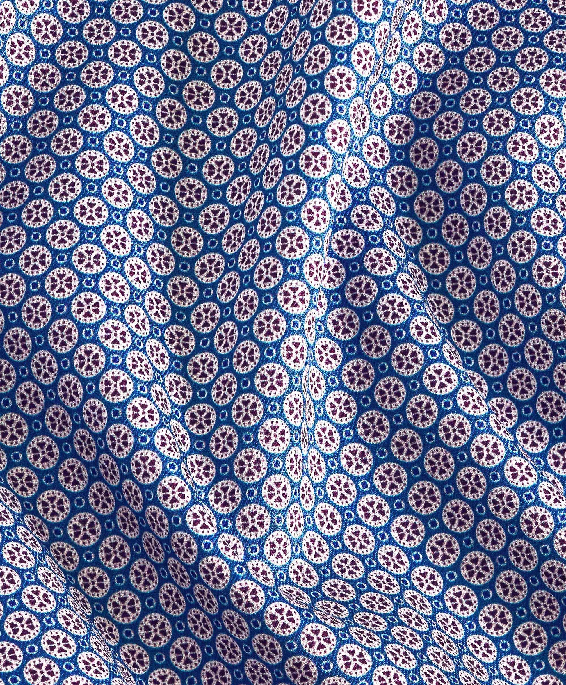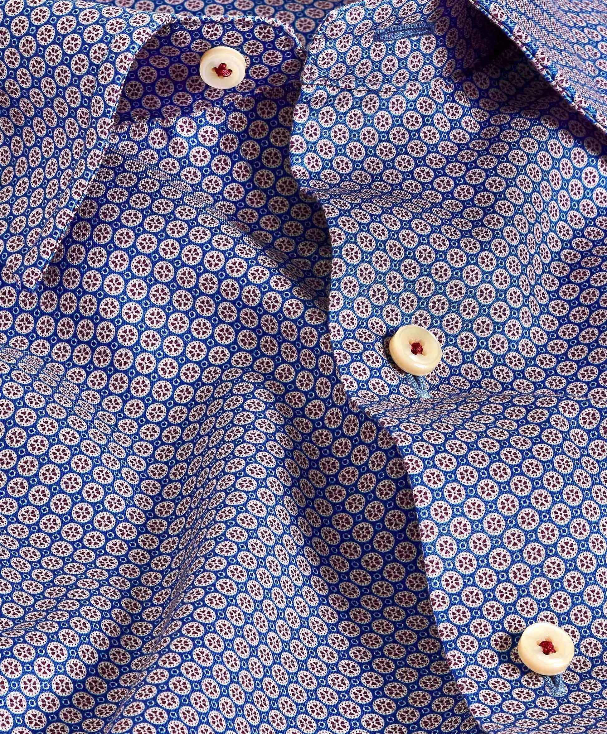 David Donahue Blue Geometric Tile Print Sport Shirt – Trim Fit