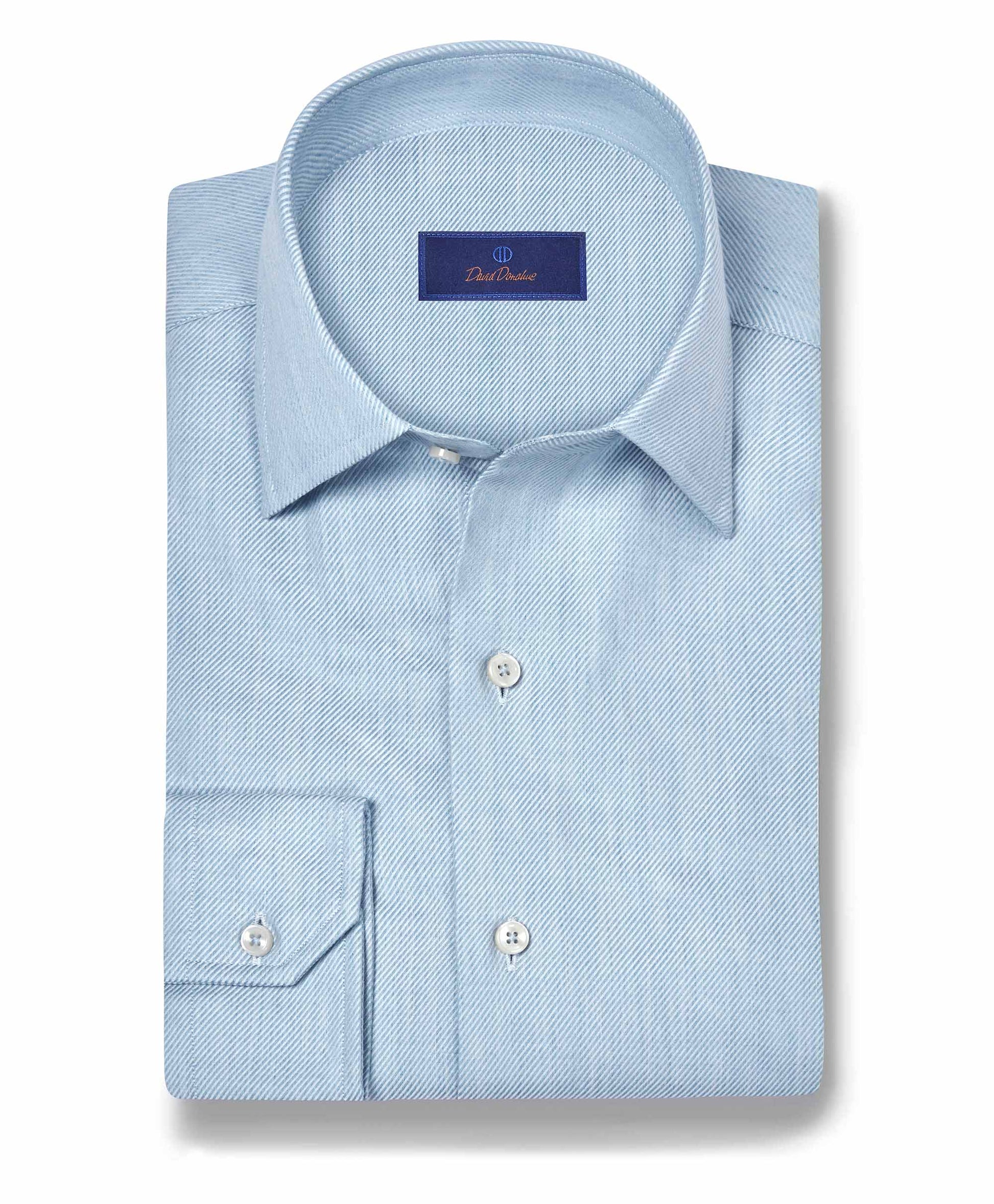 Elevate your everyday style with the David Donahue Cashmere Blend Sport Shirt — where refined craftsmanship meets luxurious comfort. Expertly woven from a premium blend of 93% U.S. Pima cotton and 7% cashmere, this 6/6 twill weave shirt delivers a remarkably soft hand-feel while maintaining the structure and durability expected from fine shirting.