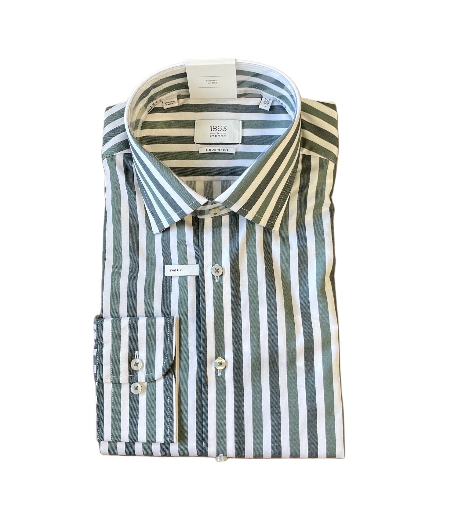 Our premium ‘1863 by ETERNA’ collection showcases exceptional craftsmanship and superior cotton fabrics with refined finishes. This stylish stripe twill shirt features a Kent collar crafted from pure, extra long-staple cotton, offering a soft, breathable feel for outstanding comfort. Designed with a regular length and rounded hem, it combines elegance and practicality, making it a distinguished choice for a sophisticated wardrobe.