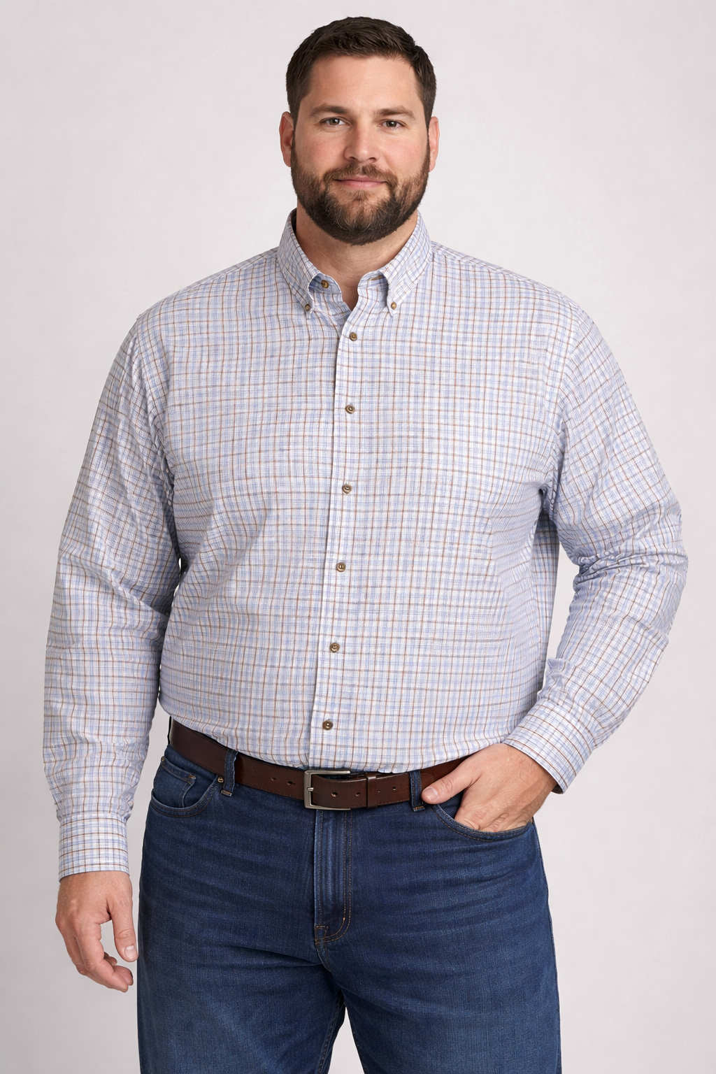 The F/X Fusion Big & Tall, 100% Cotton Check Sport Shirt offers a crisp, clean look with all-day comfort. Made from soft, breathable cotton, this shirt is perfect for both professional settings and formal occasions. Its tailored fit and classic design ensure a sharp, sophisticated appearance.