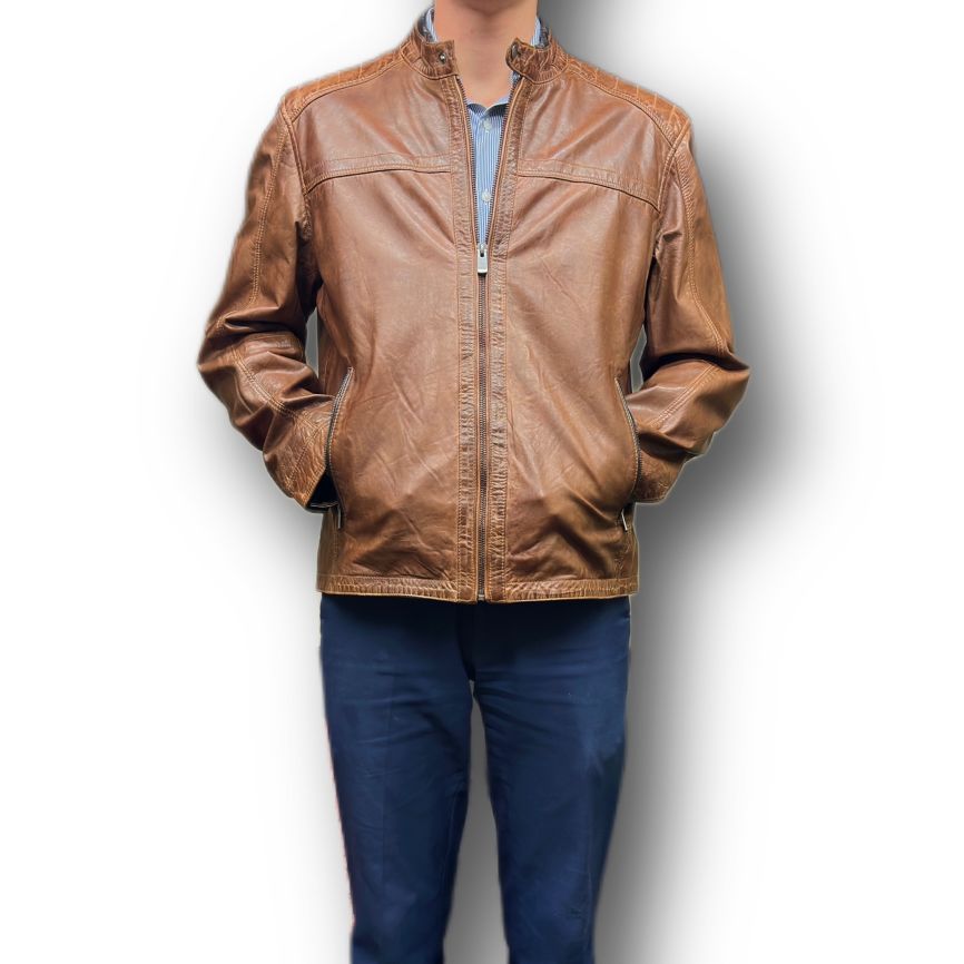 Crafted from exquisite, imported 100% Italian lambskin, this Missani leather jacket delivers unmatched softness, durability, and a refined vintage character. The antique-washed finish gives the leather a rich, lived-in look that elevates any outfit. Designed with a banded collar, snap cuffs, and a clean zip-front closure, it offers a modern, streamlined silhouette. Fully lined for comfort and easy layering, this jacket combines premium materials with timeless style—an essential piece for the discerning wardrobe.