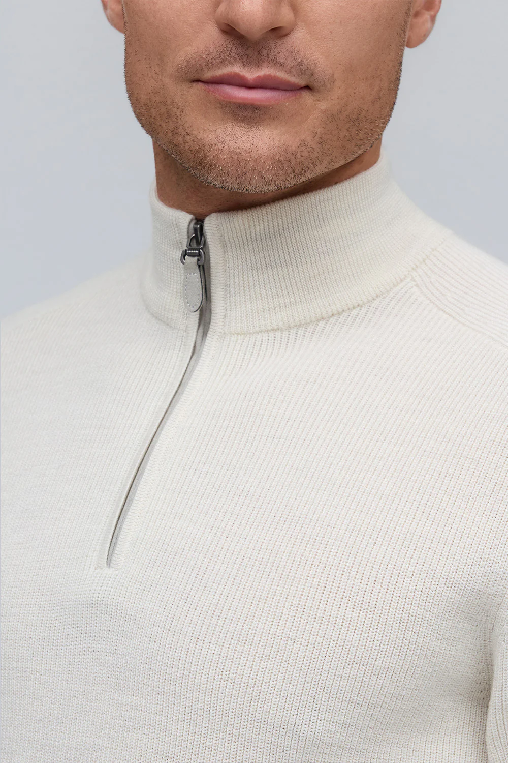 Crafted in soft, breathable merino wool, this sweater features English Rib knitting and rich suede trim at the zipper for a refined, modern look. A versatile layer with exceptional comfort and style.