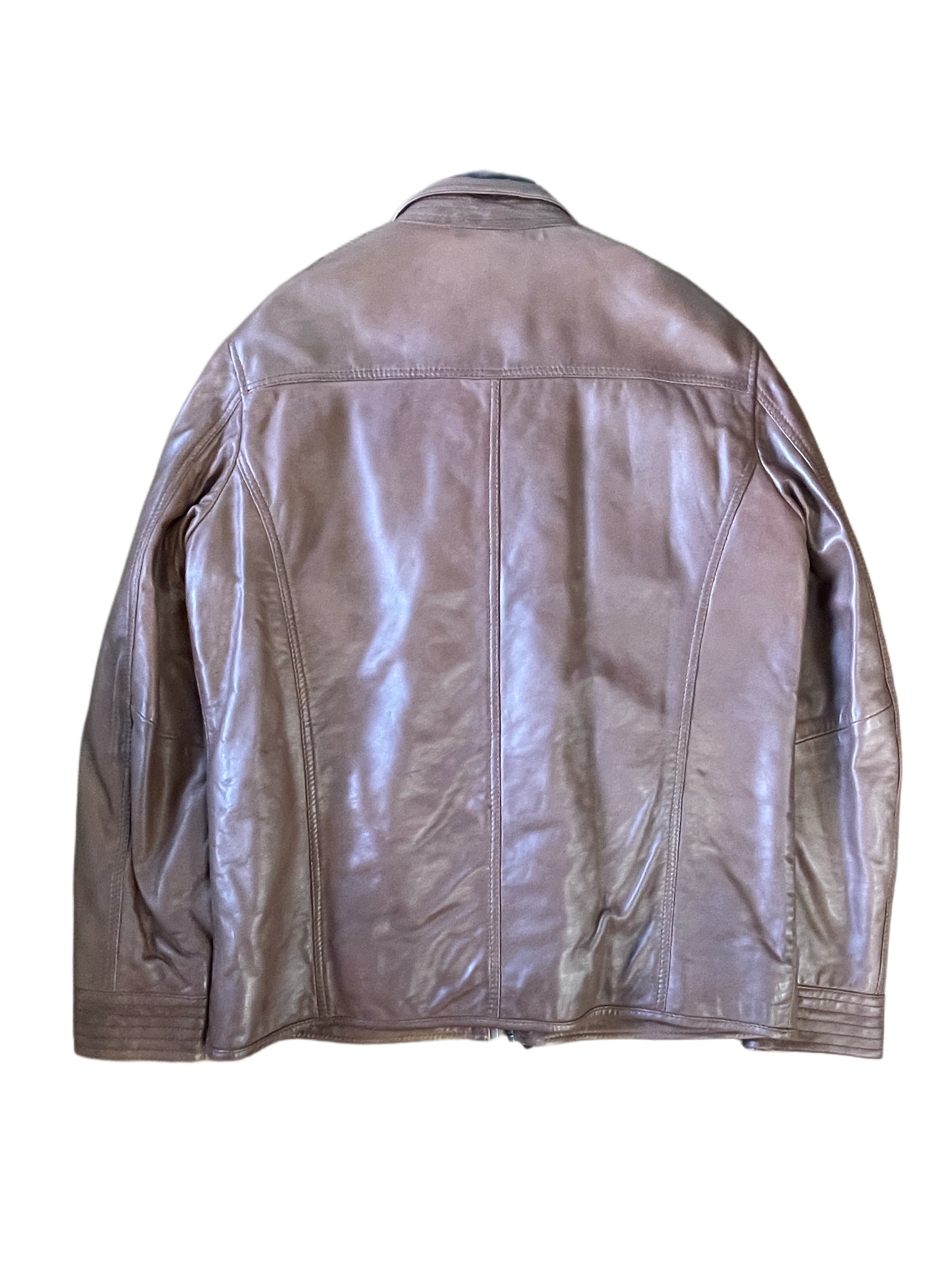- This luxurious leather jacket features a quilted polyester zippered front insert.