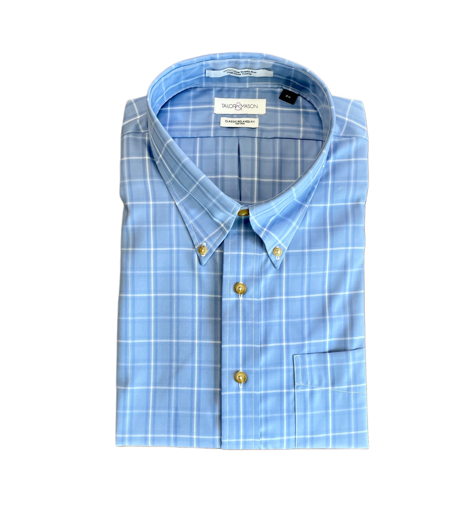 Classic and versatile, this blue and white Big & Tall plaid shirt from Tailor & Mason is crafted from 2-ply, wrinkle-free 100% cotton. Designed for all-day comfort and easy care, it delivers a crisp, polished look right out of the dryer—perfect for work, weekends, or any occasion that calls for effortless style.