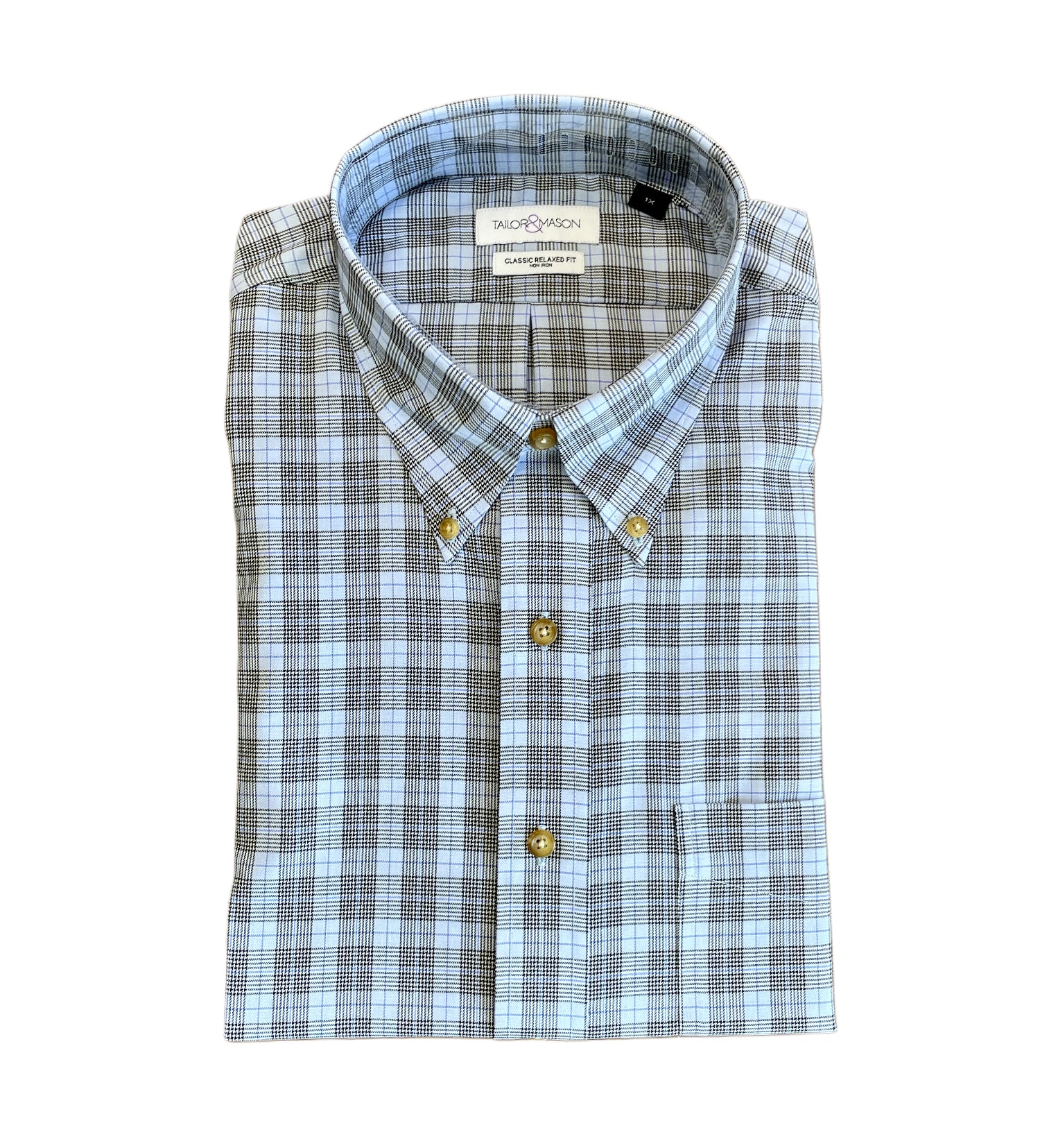 Classic and versatile, this blue and black Big & Tall plaid shirt from Tailor & Mason is crafted from 2-ply, wrinkle-free 100% cotton. Designed for all-day comfort and easy care, it delivers a crisp, polished look right out of the dryer—perfect for work, weekends, or any occasion that calls for effortless style.