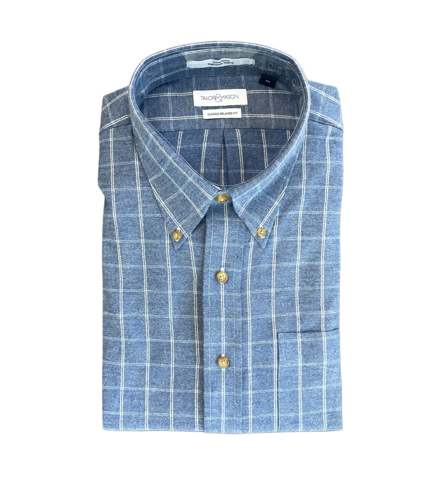 Classic and versatile, this blue, grey, and white Big & Tall plaid shirt from Tailor & Mason is crafted from 2-ply, wrinkle-free 100% cotton. Designed for all-day comfort and easy care, it delivers a crisp, polished look right out of the dryer—perfect for work, weekends, or any occasion that calls for effortless style.